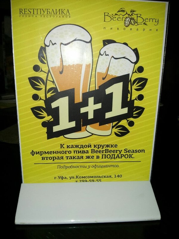 Ресторан-пивоварня BeerBerry - это бар и пивной ресторан. Здесь вы можете приятно провести время с друзьями или просто оставить волнующие мысли после рабочих будней, а в этом вам с радостью помогут наши опытные бармены и ассортимент спиртного - мы приготовили варианты горячительного, которые вам определённо понравятся! Вам нужно только сообщить желаемый градус и вкус (сладкий или горьковатый). Ведь именно кружка полюбившегося хмельного напитка точно украсит вечер и поднимет настроение!